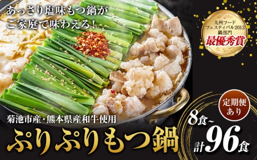 九州鍋グランプリ受賞 ぷりぷりもつ鍋 8人前 選べる 定期便 有限会社味万(万彩工房)《選べる内容量》 菊池市産・熊本県産和牛使用 モツ鍋 鍋セット セット モツ 牛丸腸 無添加スープ ちゃんぽん麺 薬味付き 送料無料