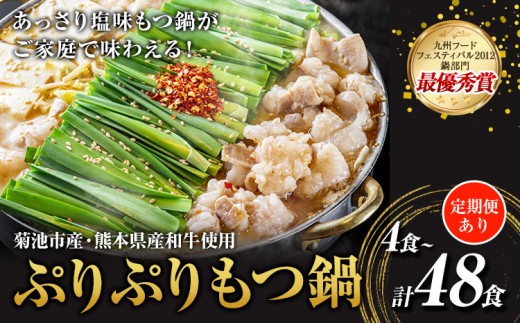 九州鍋グランプリ受賞 ぷりぷりもつ鍋 4人前 選べる 定期便 有限会社味万(万彩工房)《選べる内容量》 菊池市産・熊本県産和牛使用 モツ鍋 鍋セット セット モツ 牛丸腸 無添加スープ ちゃんぽん麺 薬味付き 送料無料
