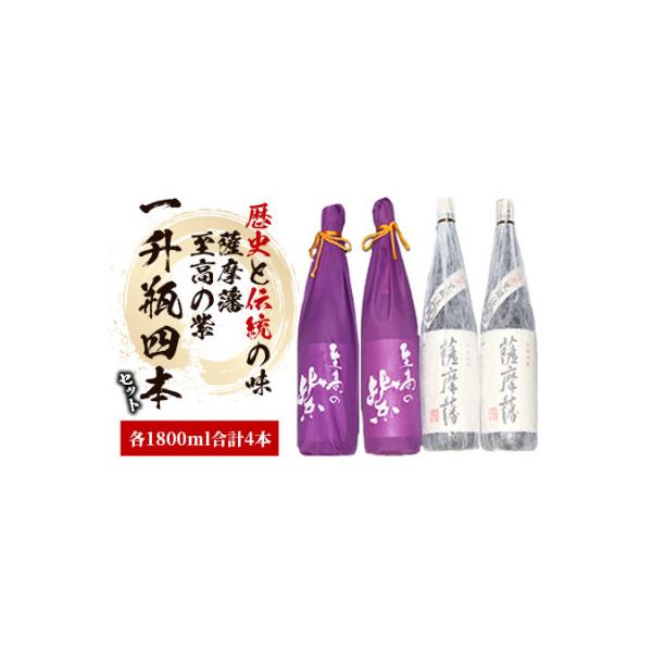 鹿児島本格芋焼酎「至高の紫・薩摩藩」焼酎飲み比べセット(各2升・1800ml×4本) 鹿児島 焼酎 芋焼酎 本格芋焼酎 芋 さつまいも 紫芋 米麹 黒麹 お酒 アルコール 飲み比べ セット 詰め合わせ[にしき屋]